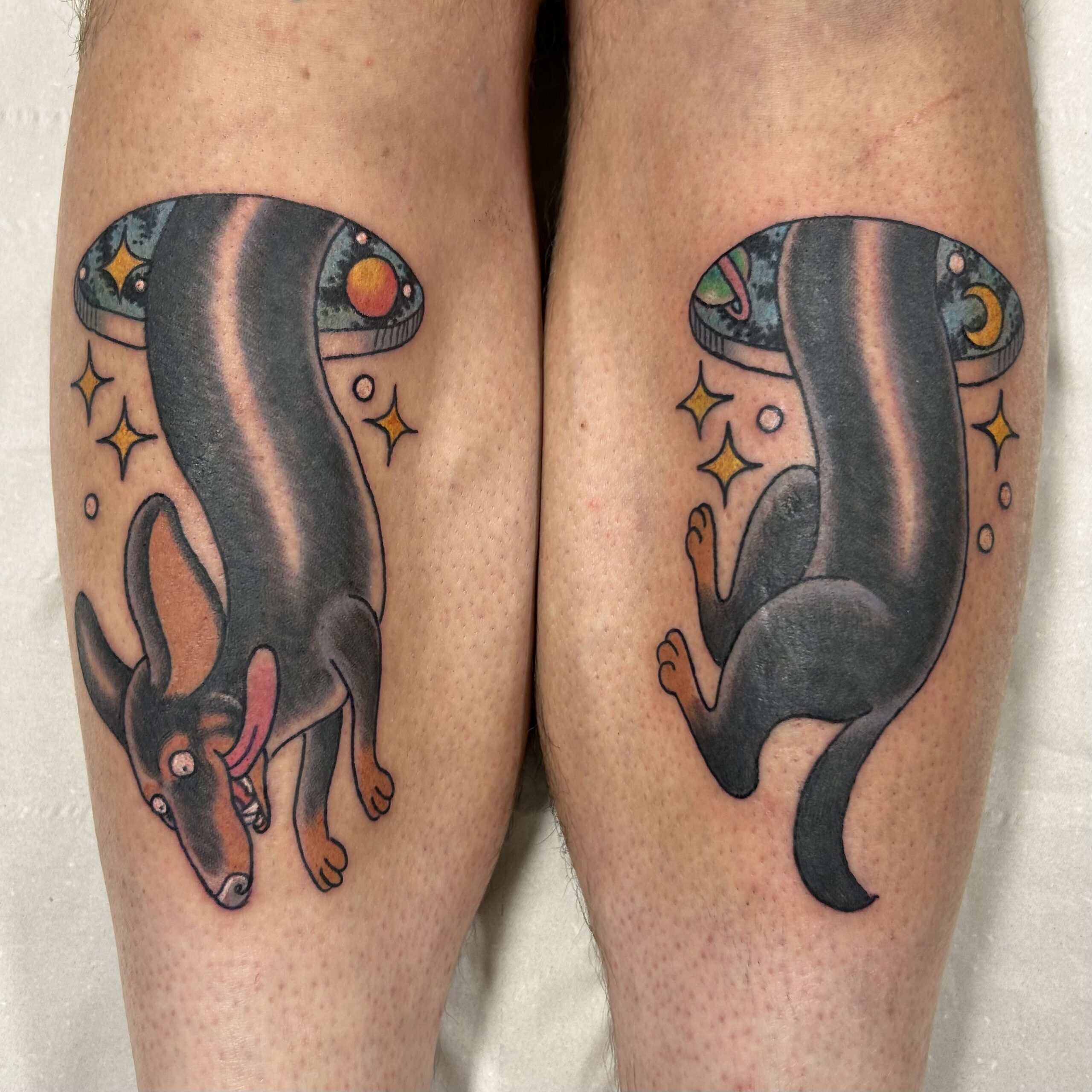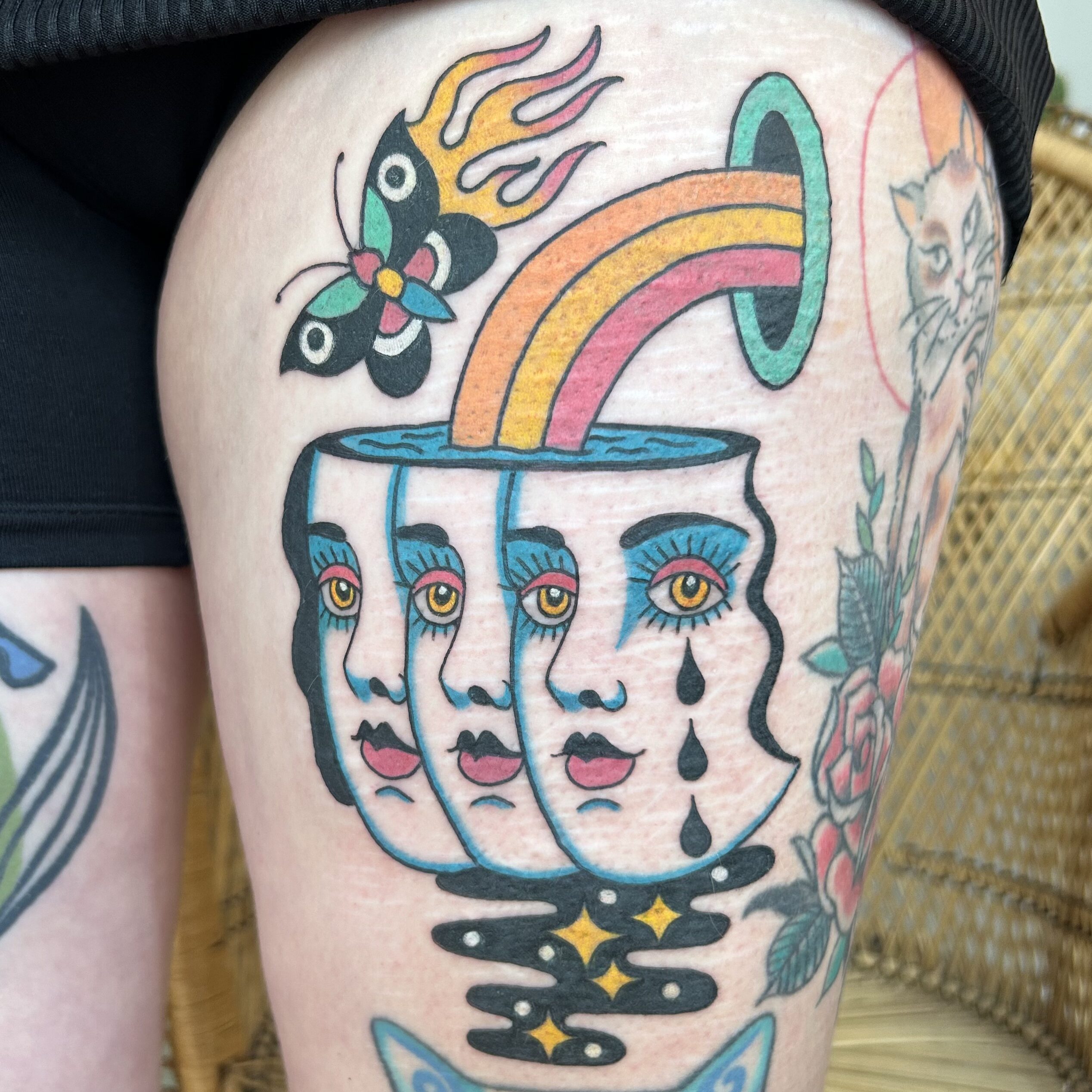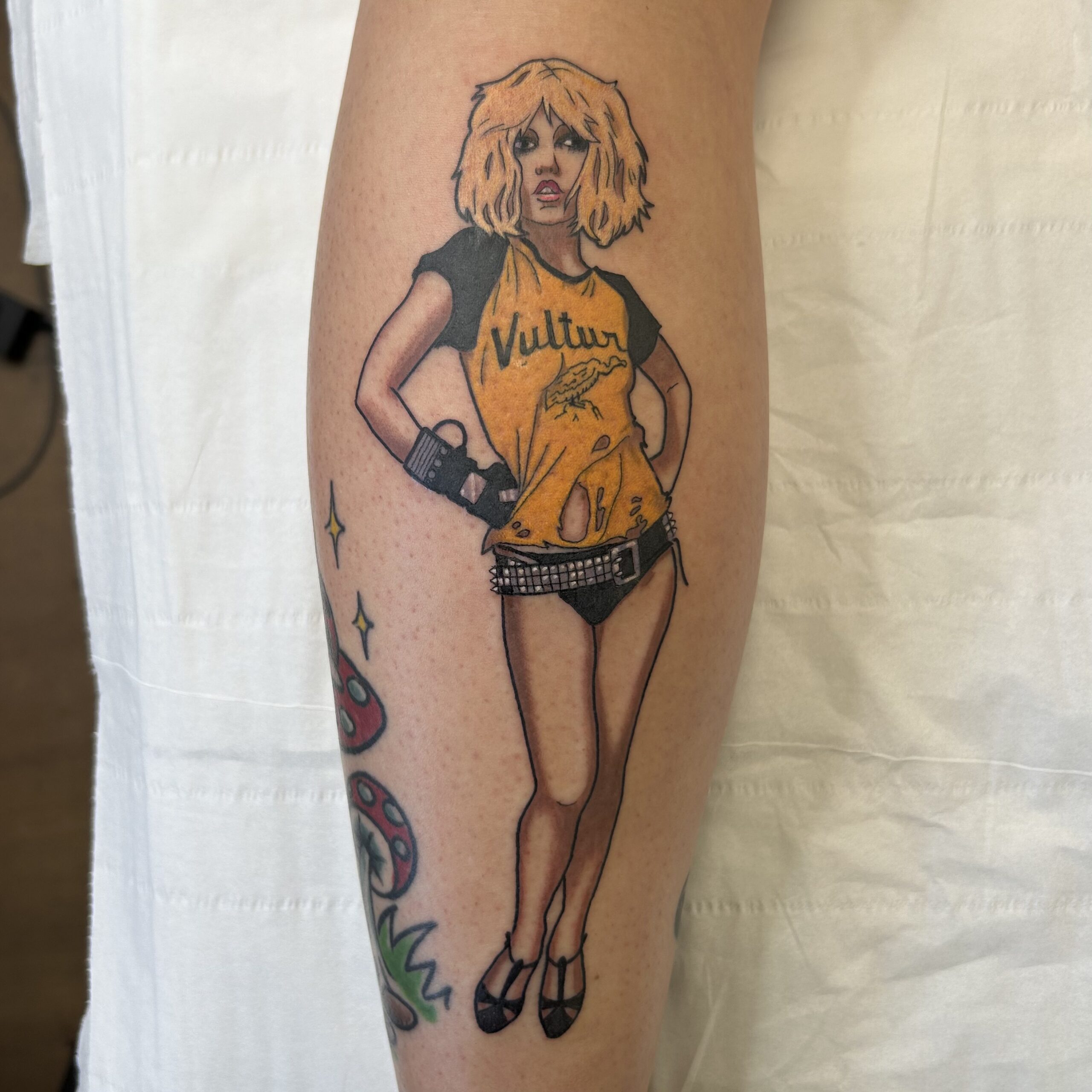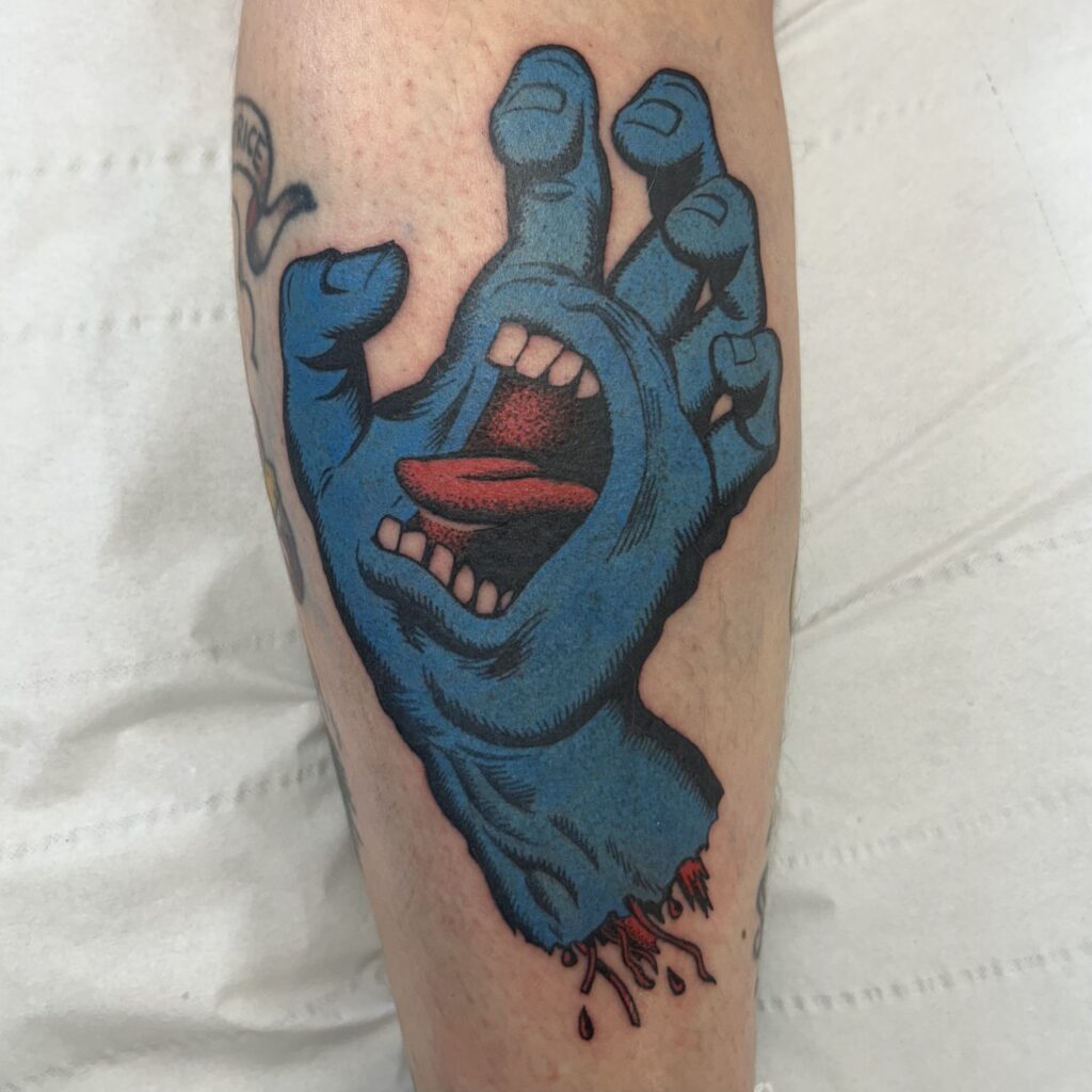Before I got into tattooing, I worked in animation as a painter on ad campaigns for brands like Coca-Cola, and on music videos for the band Gorillaz.